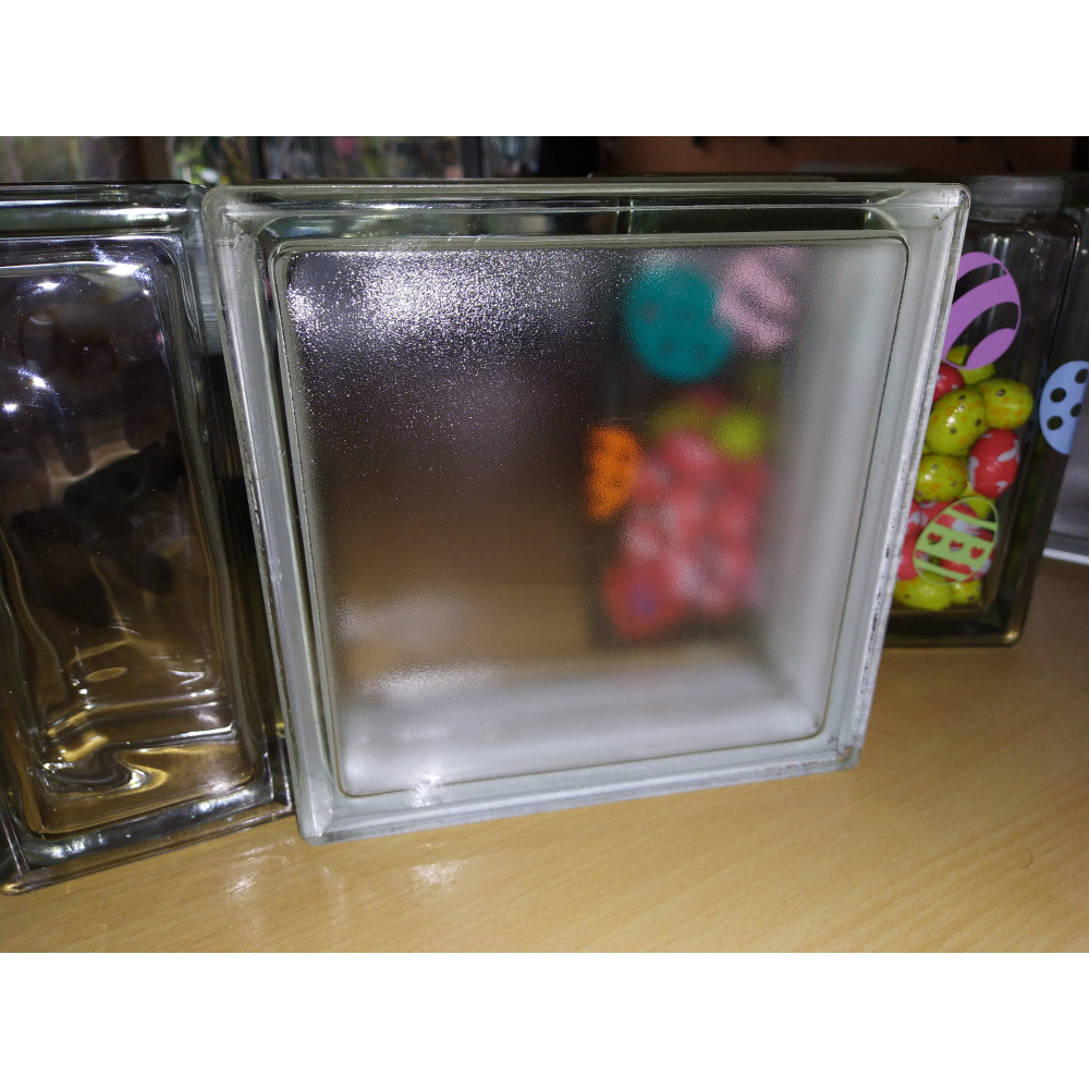 glasblok iets mat met witte rand 19 x 19 x 8 verzending is op eigen risico, na breuk bij verzenden krijg je wel 5% korting voor vervangend exemplaar