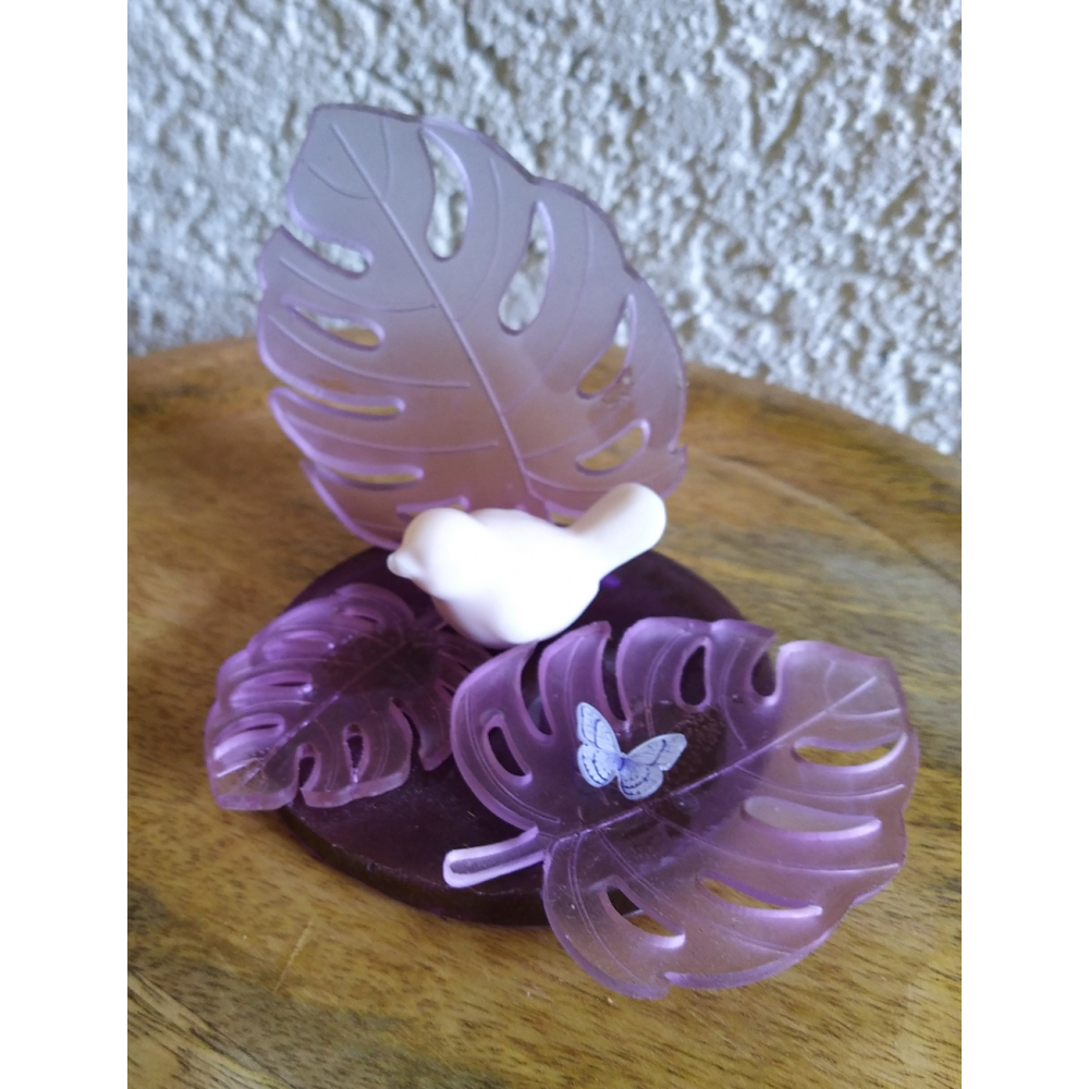 standaard van epoxy met 3 monstera, 1 grote en 2 kleinere bladeren op voet