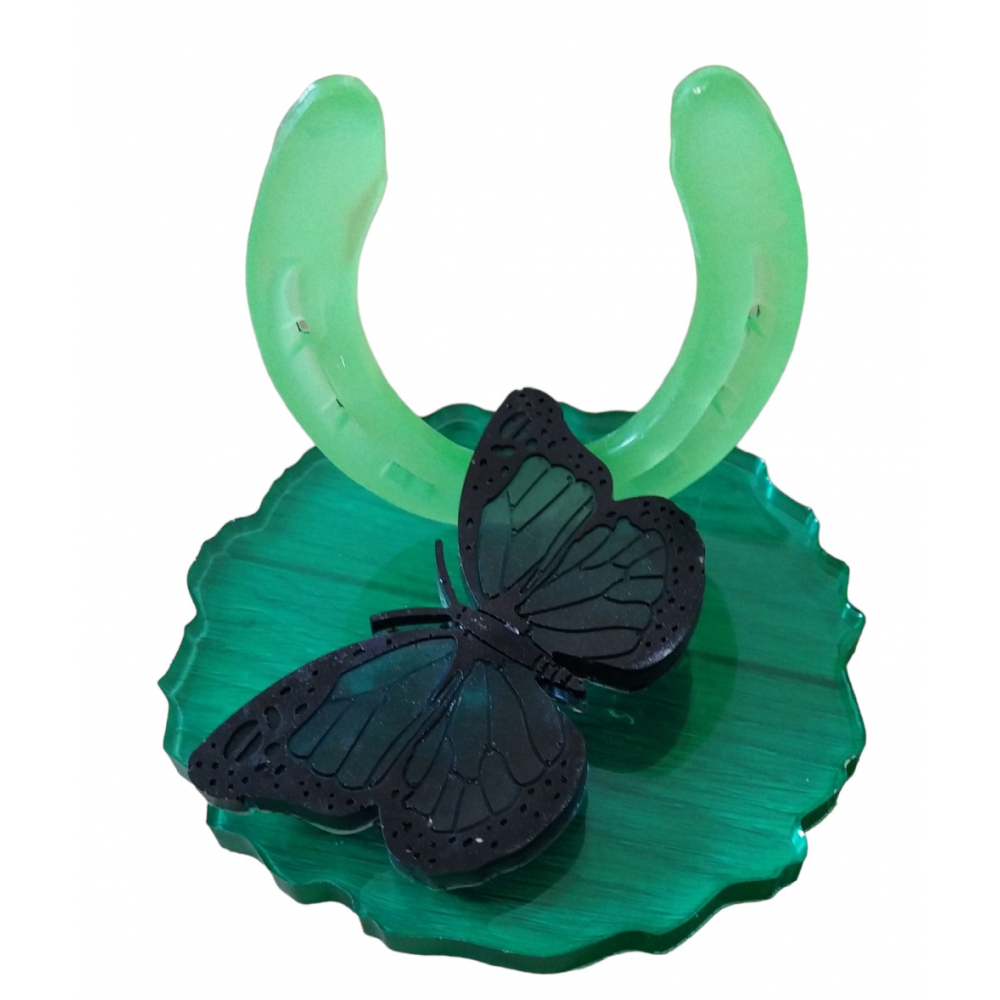 standaard van epoxy met een vlinder met hoefijzer op een voet
